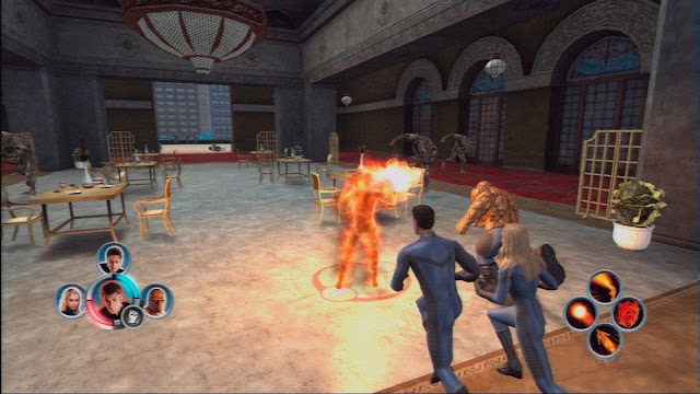Mas a sua versão videogame não correu o mesmo risco. Lançado em 2007, o jogo trouxe uma boa ambientação e um gameplay bastante divertido, permitindo você escolher qualquer um dos membros da equipe e trocar de personagem quando quiser, cada um com suas habilidades especiais para ser usada em cada missão. Além disso, ainda existem missões individuais como o Tocha Humana perseguindo o Surfista Prateado em Nova York e Sue Storm usando seus poderes de invisibilidade para se esgueirar por uma Base Militar.