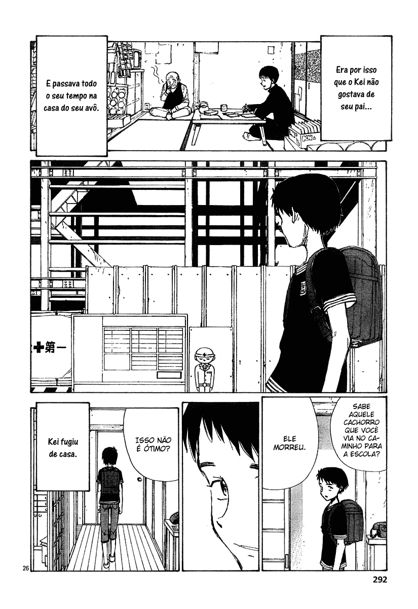 Falando do mangá em si, acompanhamos uma série de histórias independentes sobre temas humanos. Amor, abuso, morte, vida… Em algumas há elementos fantasiosos, outras não. Algumas possuem uma carga cômica, outras são mais pesadas (ainda que muito longe da brutalidade de Narutaru, outro mangá de Kitoh).