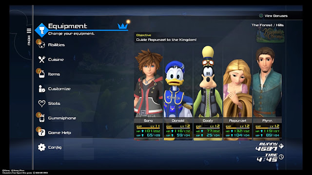 A jornada inicial de Sora e seus amigos é aumentar sua força, e isso é refletido na jogabilidade, que possui muitas ferramentas que evoluem conforme jogamos. Começando com o mais óbvio, esse ainda é um RPG de ação, então podemos equipar nossos itens, armas, atalhos de magias, entre outras coisas. Também volta a possibilidade de comprar habilidades do Kingdom Hearts II (Multi), que adiciona mais combos, finalizações, ataques em conjunto, ou até mesmo um bônus de força para um elemento mágico específico como fogo.