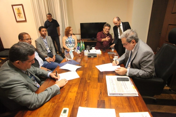 Participaram da assinatura do contrato o secretário de governo Paulo César Medeiros, a secretária de administração Adamires França, o gerente de governo da CEF, Sílvio José Conceição, a assistente de governo da CEF, Raisse Xavier, e o gerente geral da agência Ribeira da CEF, Welter Santana.