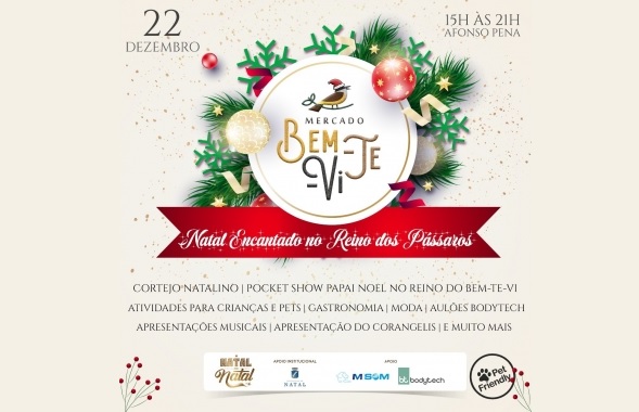 Evento que tem apoio da Prefeitura do Natal e está inserido no “Natal em Natal”, o Mercado Bem-te-vi terá sua última edição de 2019 no próximo domingo (22/12) no bairro Tirol. Com início às 15h e encerramento às 21h, o evento que celebra um ano de atividades e será um especial de Natal, ampliou sua área de interação e vai acontecer no trecho da Avenida Afonso Pena compreendido entre as Ruas Açu e Trairi, onde serão montadas tendas com opções de presentes, moda e decoração e espaços de convivência, área pet, além de palco para apresentações de shows natalinos.