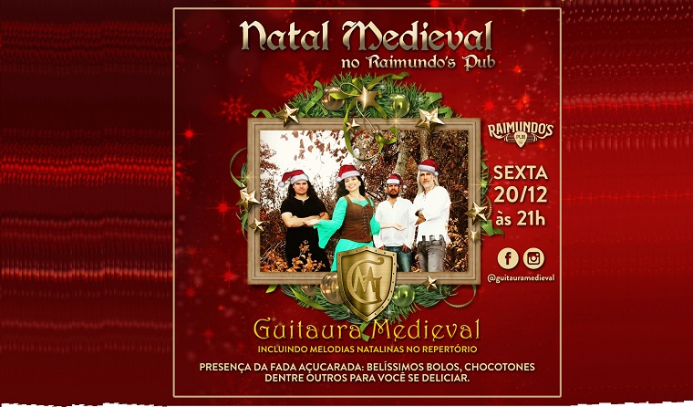 O Natal Medieval vai ser hoje (20), às 21h, no Raimundo’s Pub. Será uma boa opção para quem quer fugir dos festejos tradicionais e quer alimentar a alma com música dos reis e manjar dos deuses.
