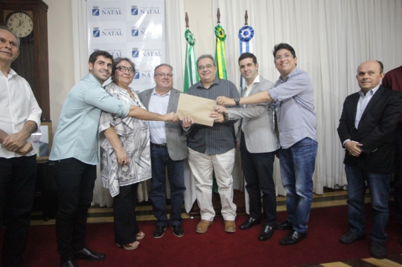 “A devolução de R$ 5,5 milhões representa muito num momento de crise em que atravessamos. O gesto demonstra austeridade da Câmara Municipal. Agradeço o esforço do presidente Paulinho Freire, da mesa diretora e de todos os vereadores da casa legislativa”, assinalou o prefeito Álvaro Dias ao receber uma representação da Câmara Municipal de Natal (CMN) na manhã desta sexta-feira (27/12), no Salão Nobre do Palácio Felipe Camarão.
