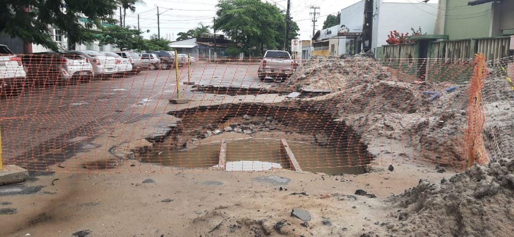 As chuvas que caem em Natal causam diversos transtornos à população, como a cratera que se formou na rua Almino Afonso, no bairro da Ribeira, Zona Leste da capital potiguar. Com precipitações previstas até maio deste ano, o secretário municipal de Obras, Tomaz Neto, informou que a obra de macrodrenagem deve ser concluída apenas em dezembro deste ano.