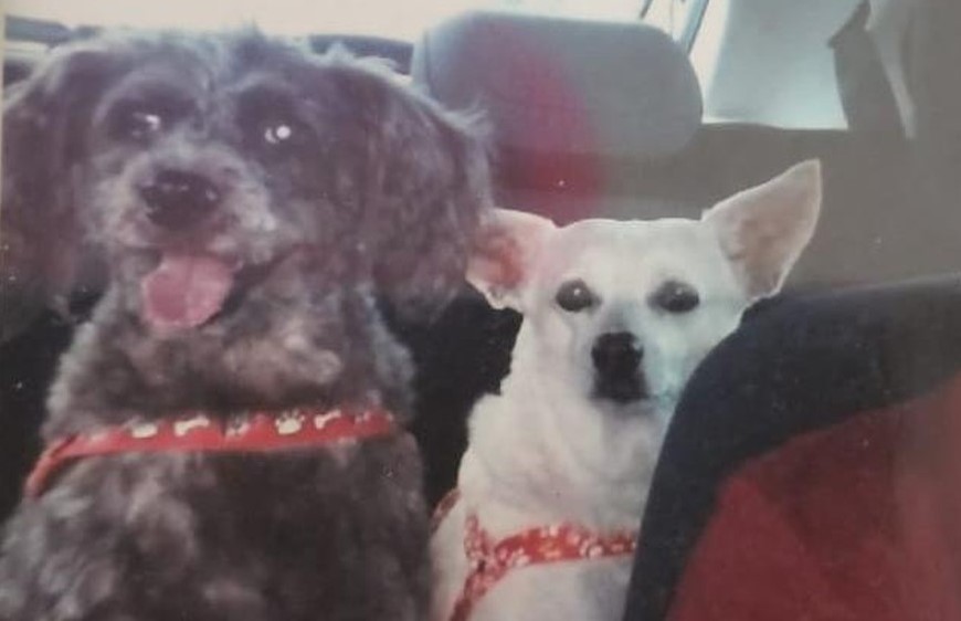 A dona está preocupada. De acordo com ela, Pelúcio (o cachorro preto na foto) já é idoso e faz tratamento para glaucoma, precisando de aplicação de remédio três vezes por dia. A outra cadela é a Maria Clara.