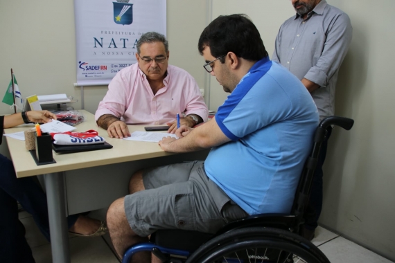 Nesta quinta-feira (02/04), o prefeito de Natal, Álvaro Dias, recebeu o presidente da Sociedade Amigos do Deficiente Físico do Rio Grande do Norte (Sadef-RN), Tercio Tinoco, para a assinatura do termo de fomento aos paratletas. Durante o ato, Tercio agradeceu o incentivo dado pela atual gestão municipal. “Estamos aqui para agradecer o grande incentivo que Álvaro Dias tem dado aos nossos paratletas. Estamos representando nossa cidade Natal mundo afora. Recentemente, conquistamos o titulo de melhor e maior clube do norte-nordeste”, disse.