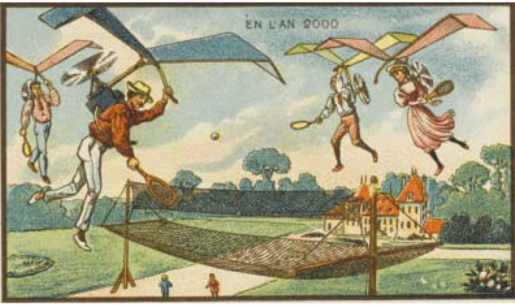 No começo do século passado, artistas plásticos foram convidados a retratar com seria o ano 2000, e as imagens criadas foram incríveis, o criador da ideia foi o artista francês Jean-Marc Cote e algumas outras em 1899, 1900, 1901 e 1910, em uma questão de imaginar como seria a vida no ano 2000. Todas as obras eram originalmente na forma de cartões postais ou cartões de papel colocados em caixas de cigarros e charutos.
