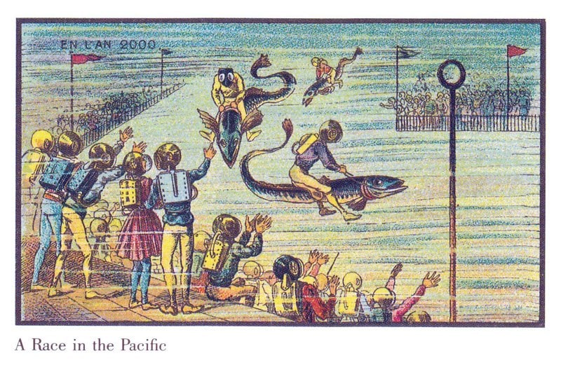 As imagens retratam o mundo como se imaginava o ano 2000. Algumas dessas ilustrações únicas são na verdade uma visão bastante precisa da era atual, incluindo máquinas agrícolas, equipamentos robóticos e máquinas voadoras. Mesmo que ainda não começamos a montar cavalos-marinhos gigantes.