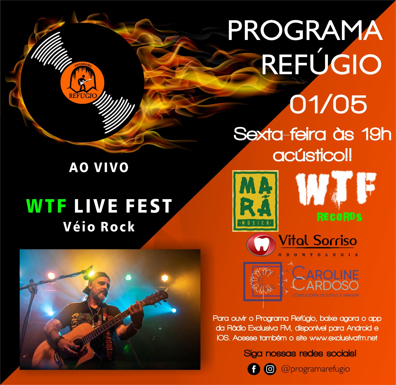 O primeiro WTF Live Festival acontecerá às 19h, nesta sexta-feira, com o show acústico do Véio Rock, artista que vem ganhando grande projeção no cenário nacional.