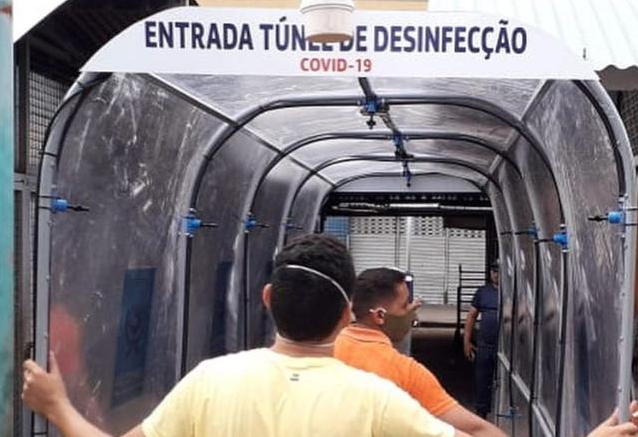 Um túnel de desinfecção de pessoas, com sensor de movimento para ativação e evitar o desperdício da solução de quaternário de amônia, foi instalado neste sábado (9) no bairro Cobal, em Mossoró, e deve começar a funcionar nesta segunda-feira (11), segundo a prefeitura.