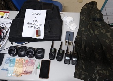 Durante a ação, foram apreendidos com a dupla aproximadamente 180g de cocaína, duas porções de maconha, duas munições cal. 12, um colete balístico, quatro rádios comunicadores, uma balança de precisão, R$ 217 em dinheiro fracionado e uniformes do exército