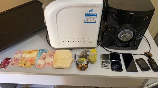 Durante a realização das diligências, foram apreendidos porções de maconha e cocaína, dois veículos automotores que estavam adulterados, uma balança de precisão, um tablete de “Crack”, uma quantia em dinheiro fracionado e aparelhos celulares.