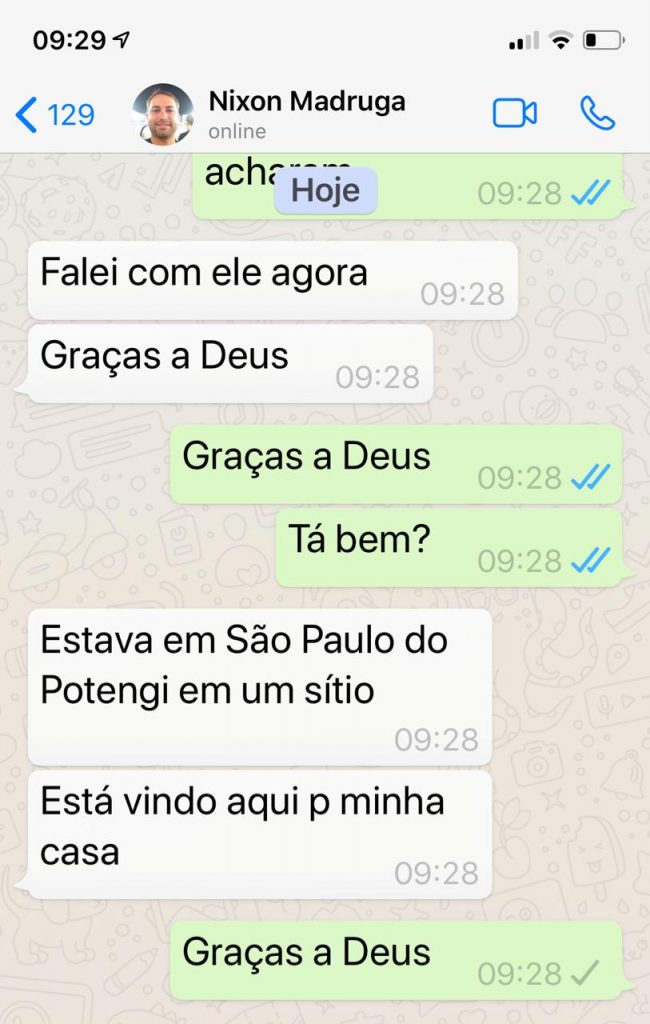 Após muitas tentativas frustradas, o filho de Liszt, Nixon Madruga, finalmente nesta manhã conseguiu fazer contato.