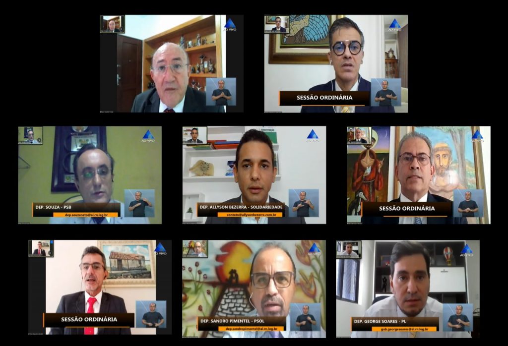 Os trabalhos na Assembleia Legislativa seguem diariamente através do Sistema de Deliberação Remota (SDR). Na sessão ordinária desta quarta-feira (17), os deputados estaduais trataram de temas que afligem a população potiguar e votaram favoravelmente ao texto que decreta estado de calamidade pública no município de Brejinho em decorrência da pandemia do novo coronavírus.