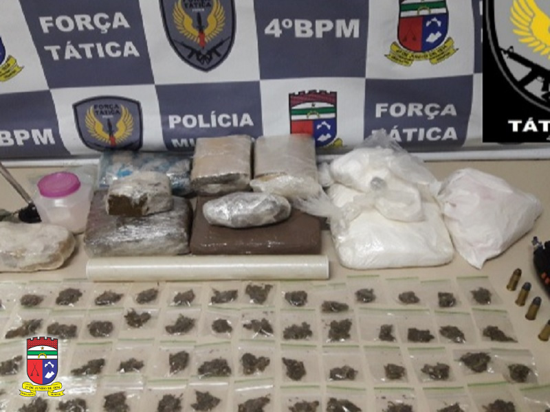 Ainda durante a abordagem, com o suspeito os militares encontraram 6,5kg de substâncias análogas à maconha (3kg), à cocaína (2kg) e ao crack (1,5kg). Também com o foragido da Justiça foram encontradas quatro munições de calibre .38.