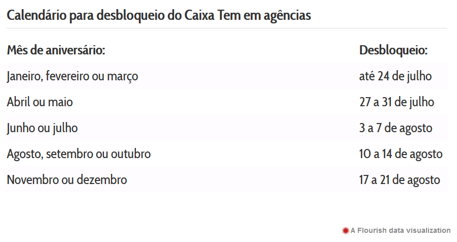 Já as pessoas com conta bloqueada por suspeita de fraude precisam procurar uma agência da Caixa, respeitando o seguinte cronograma: