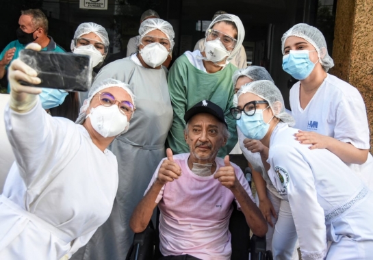 De acordo com Ana Patrícia Tertuliano, coordenadora da UTI do Hospital Municipal, ele chegou no início da pandemia. “Tivemos mais de 180 pacientes enquanto ele esteve internado aqui. Aprendemos como tratar Covid com ele, pois foi um período super prolongado. Todas as complicações que um paciente pode ter, ele teve: diálise, pneumonia, lesão por pressão. Nunca atendi por tanto tempo um paciente numa UTI. Ele lutou muito e hoje volta pra casa. É um paciente que nos surpreendeu, que quis muito viver”.