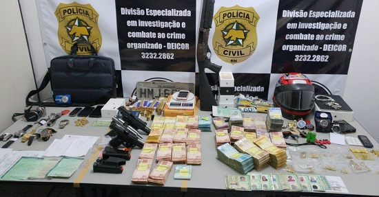 Durante a Operacão, foram apreendidos, aproximadamente, R$ 100.000,00 (cem mil reais) em espécie, quase meio quilo de ouro em joias, oito veículos, além de quatro armas de fogo, sendo uma pistola calibre .380, outra calibre .40, uma 9mm e uma espingarda calibre 12. Também foram encontrados maconha, “crack”, cocaína e balanças de precisão.