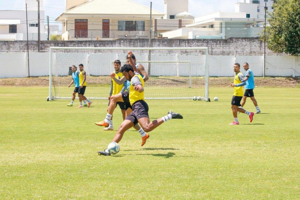 Antes da atividade, o treinador Francisco Diá conversou rapidamente com o grupo no campo do CT e depois os jogadores participaram de um treino leve, apenas um recreativo, o “rachão”.