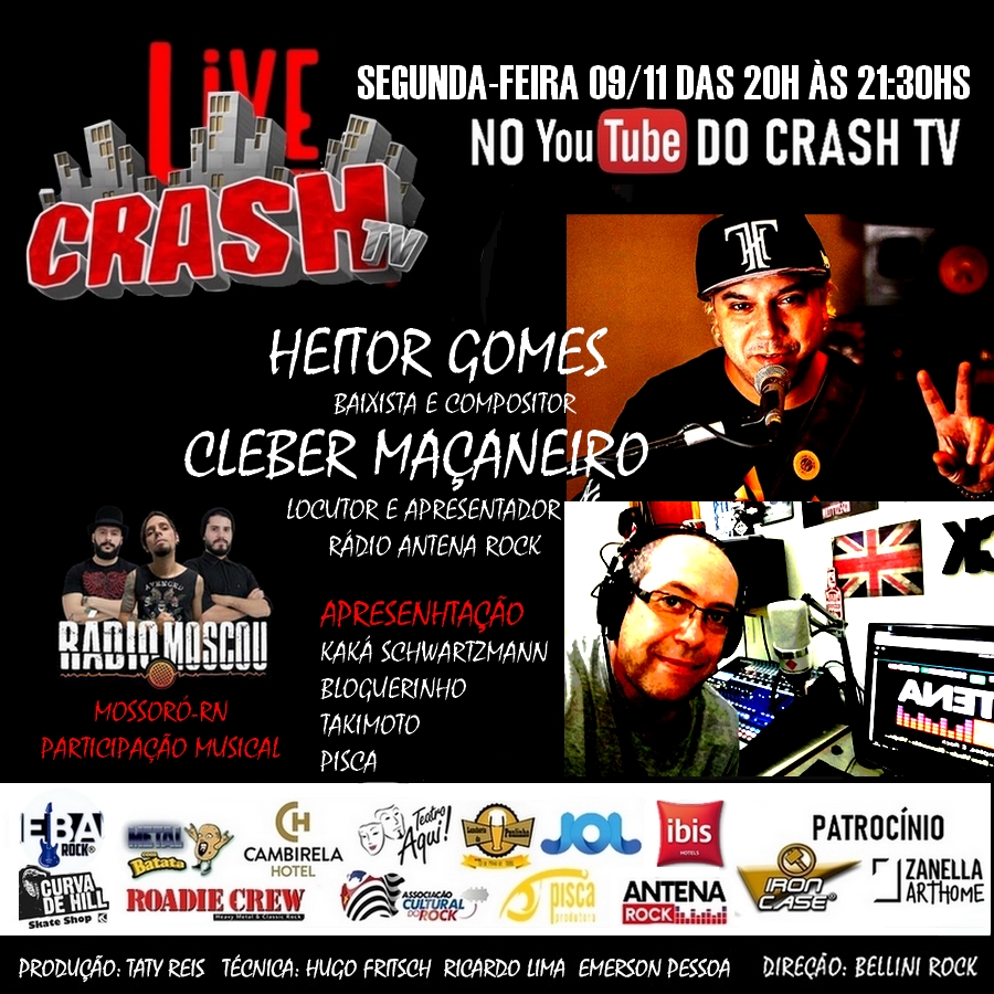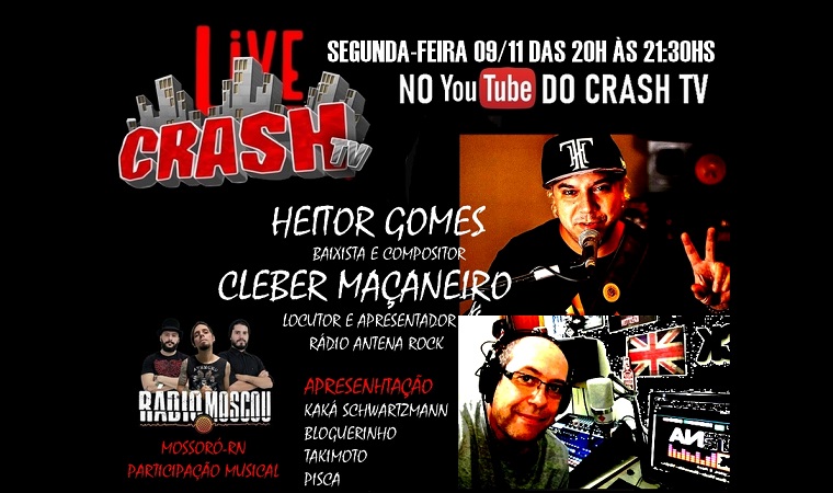 A Live Crash TV vem sempre difundindo o rock nacional, por ela passaram grandes nomes em ascensão. Dessa vez a banda mossoroense Rádio Moscou irá regar a trilha sonora do bate-papo mais que especial com o baixista e compositor Heitor Gomes (Charlie Brown Jr.), e o radialista e apresentador da Rádio Antena Rock, Cleber Maçaneiro.