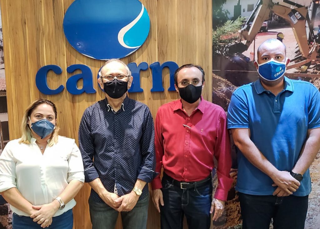 Na última quarta-feira (2), o deputado estadual Souza Neto (PSB), esteve em audiência com o Diretor Presidente da Companhia de Águas e Esgotos do Rio Grande do Norte (Caern), Roberto Linhares e o diretor técnico da Companhia, Thiago Índio. Na ocasião o parlamentar estava acompanhado da prefeita eleita de Grossos, Cinthia Sonale (PSDB).