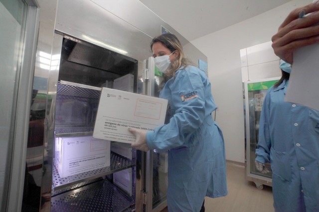 Os profissionais de saúde escolhidos são os que atuam na linha de frente contra a Covid-19 e que tratam os pacientes em UTI. Eles serão vacinados nas próprias unidades.