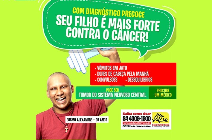 Nessa linha, na próxima quarta-feira (24), a instituição promove, às 17h, uma live temática, em seu Instagram. Na ocasião, o pediatra Wagner Martins, que é especialista em oncologia e neurooncologia pediátrica, participará, respondendo perguntas e falando sobre esse tipo de câncer, que representa de 1,4 a 1,8% de todos tumores malignos no mundo. Siga o perfil e tire todas as suas dúvidas: @casadurvalpaiva.