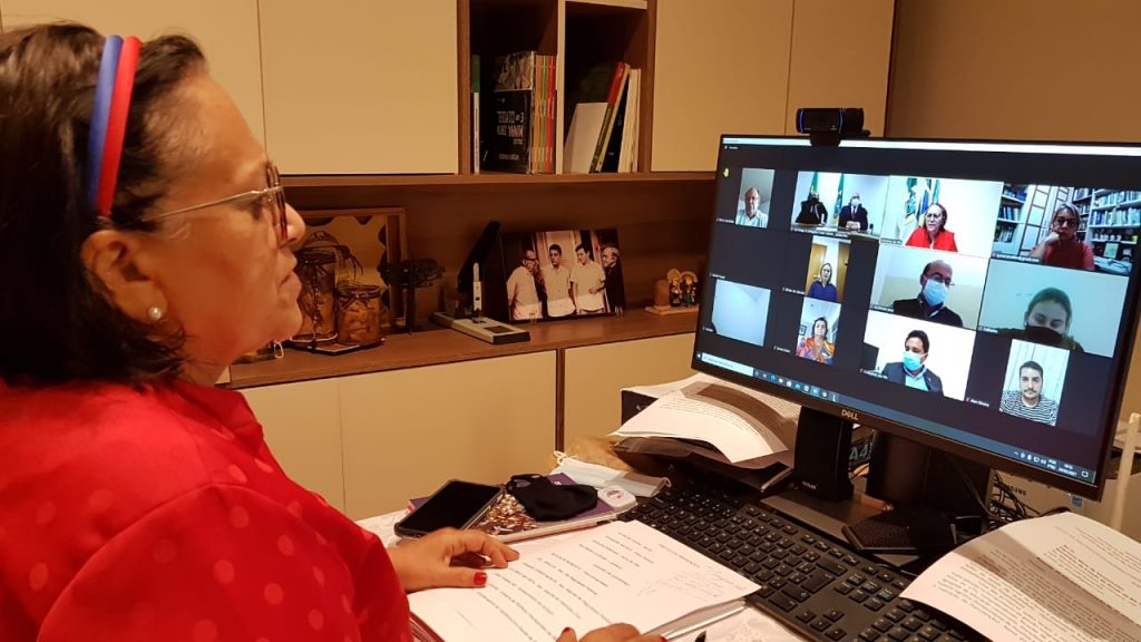 O aceno à união com prefeituras, à participação de entidades de classe, das igrejas e da sociedade como um todo na luta contra a Covid-19, foi feito nesta quarta-feira (24) pela governadora Fátima Bezerra em reunião virtual com prefeitos e gestores de saúde dos municípios da 2ª Regional de Saúde, em resposta ao pedido de prefeitos da região para reforçar a presença das forças de segurança e, com isso, fazer cumprir as medidas restritivas à circulação de pessoas.