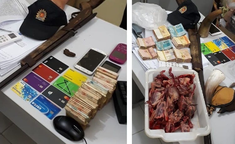 O homem no ato assumiu vender drogas e ao ir na sua residência para pegar sua documentação, os policiais visualizaram uma espingarda e aves silvestres abatidas. Diante do flagrante, ao realizar uma busca minuciosa foi encontrada uma pequena porção de maconha e vários sacos, que geralmente são usados para acondicionar drogas.