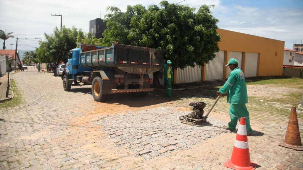 Na manhã desta quinta-feira (6), as equipes de manutenção de calçamento atuaram em Pirangi, nas ruas Dr. João Barreto de Medeiros, que dá acesso à praia, e na Antunes de Souza.