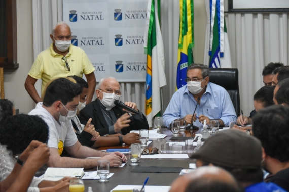 O prefeito Álvaro Dias recebeu o Arcebispo de Natal, Dom Jaime Vieira, acompanhado de representantes de instituições e entidades de amparo social, além da vereadora Divaneide Basílio, para tratar de uma ação integrada que possibilite o Município assumir, de forma emergencial, o contrato temporário para o subsídio monetário dessa população, após o vencimento de convênio firmado no ano passado entre a Cáritas Arquidiocesana, Governo do Estado e Governo Federal.