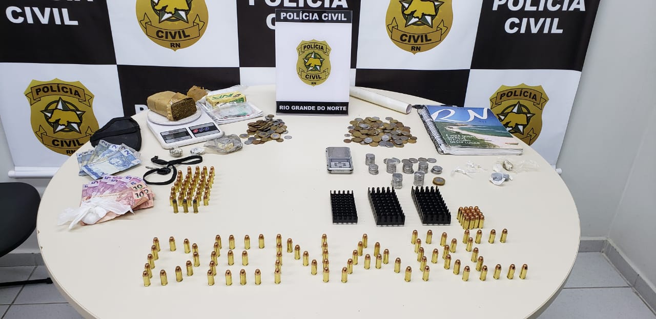 Na residência, foi constatada a veracidade da denúncia e foram localizados pedaços de tabletes de maconha, porções de “crack” e cocaína, 130 munições de calibres .40, .380, .32, duas balanças de precisão, cadernos com a contabilidade do tráfico, sacos para embalar drogas, além de dinheiro fracionado. O material foi apreendido e apresentado na DENARC.