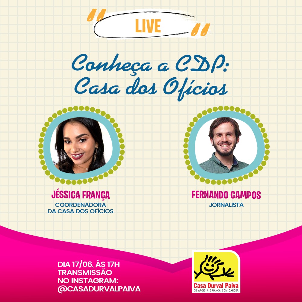 Nesta quinta-feira (17), às 17h, o jornalista Fernando Campos estará no Instagram da instituição, com Jéssica França, que é a coordenadora da Casa dos Ofícios na Casa Durval Paiva, apresentando um pouco desse ofício.