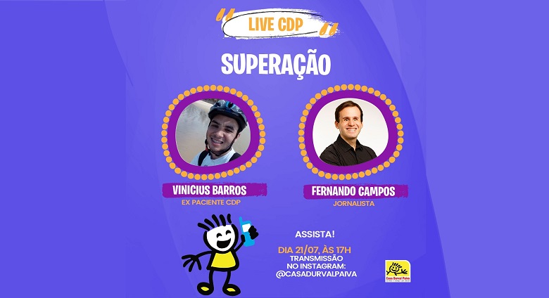 Nesta quarta-feira (21), às 17h, continuam as lives comemorativas do mês de aniversário da Casa Durval Paiva, a instituição vai contar a história de Vinícius Barros. Ele, que é ex-paciente da CDP, vai contar como foi a sua luta contra o retinoblastoma e sua experiência na instituição.