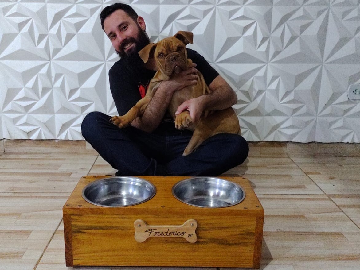 “A veterinária Viviane pediu para que eu fizesse um comedouro elevado para o Odie, que tinha alguns problemas de coluna. Diante da solicitação, pensei e projetei o comedouro mais alto para facilitar o momento dele comer e beber. Felizmente, a doutora gostou do meu trabalho, porque facilitou o cuidado que ela sempre teve com o cãozinho. O produto foi muito bem aceito pelos veterinários, o que ocasionou mais pedidos, pois eles foram indicando meu trabalho para seus pacientes”, recorda, emocionado, Willian Bortolaci.