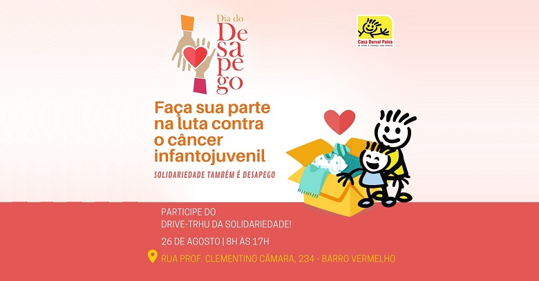 A campanha Dia do Desapego, promovida pela Casa Durval Paiva, com o intuito de arrecadar doações em prol da luta contra o câncer infantojuvenil e doenças hematológicas crônicas, está na sua edição de agosto. Este mês, ela acontece na próxima quinta-feira (26), das 8h às 17h. A ideia é desapegar daqueles itens acumulados e que estão sobrando em casa, transformando a vida de crianças e adolescentes carentes, acolhidos pela instituição.