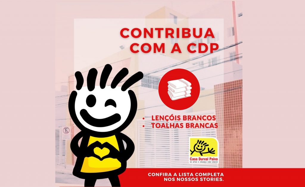 A Casa Durval Paiva busca prestar o melhor atendimento às crianças e adolescentes acolhidos, se mantendo através da doação de itens, para a nutrição e acolhimento deles, durante o tratamento contra o câncer e doenças hematológicas crônicas, bem como, seus familiares. No momento, a CDP está com a necessidade de doação de toalhas e lençóis brancos.