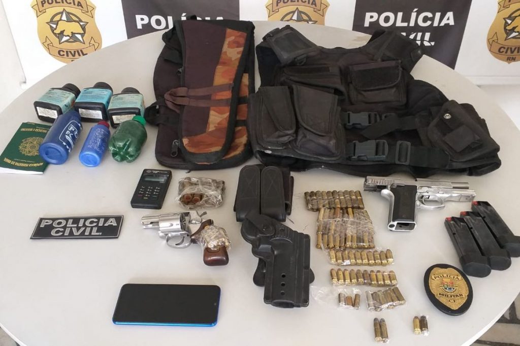 Foram apreendidos armas de fogo, munições e aparelhos de telefonia celular, que estavam em poder dos suspeitos presos.