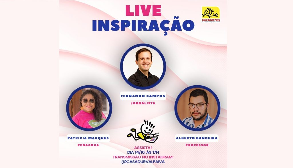 Nesta quinta-feira (14), às 17h, a Casa Durval Paiva realizará uma live, em seu perfil do Instagram, alusiva ao dia das crianças e dia dos professores. A instituição vai apresentar um pouco do trabalho realizado pelo setor pedagógico, incluindo seus projetos e ações, com as crianças e adolescentes acolhidos pela CDP.