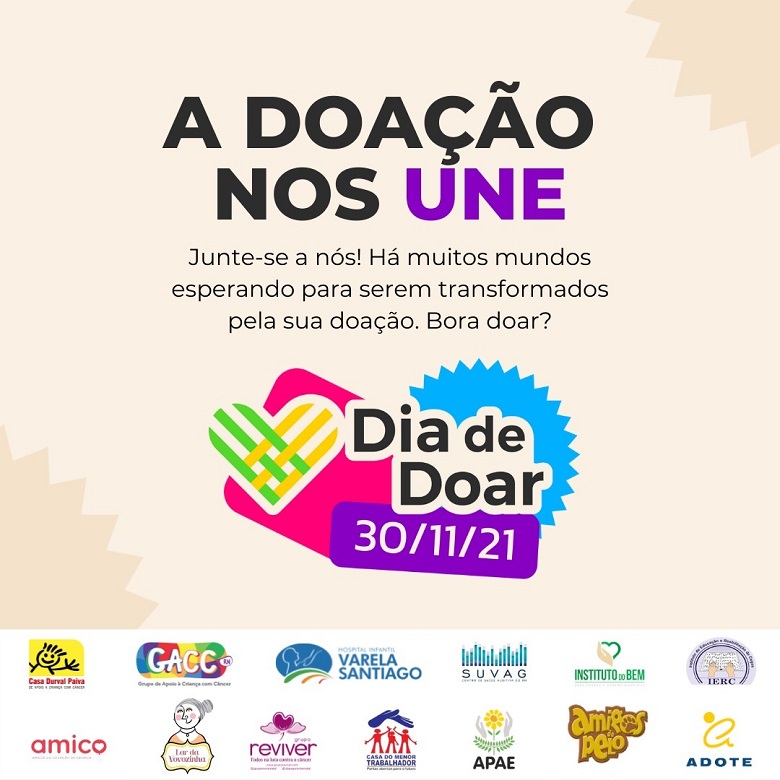 Gerar uma grande corrente de generosidade, fortalecendo o hábito de doar como parte do cotidiano das pessoas é o que promove o Dia de Doar RN, que acontece, na próxima terça-feira, 30 de novembro. Encabeçado por instituições filantrópicas potiguares, que sobrevivem de doações e gestos solidários da sociedade, que abraçaram essa campanha mundial.