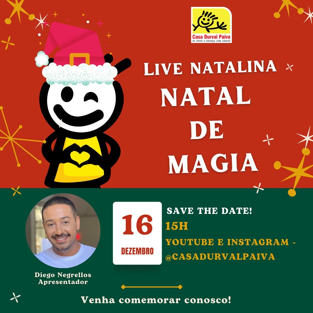 Nesta quinta-feira (16), a partir das 15h, a Casa Durval Paiva promoverá uma live especial, iniciando as celebrações natalinas. Com apresentação de Diego Negrellos, a transmissão será realizada através das plataformas YouTube e Instagram, que levam o nome da instituição.