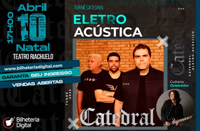 A Banda Catedral volta a Natal, no dia 10 de abril, no Teatro Riachuelo, com uma turnê super especial “Catedral Eletroacústica”, que desfila os grandes sucessos da banda em um formato contagiante!