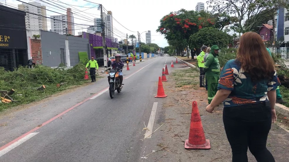 Pela manhã, os servidores também trabalharam na retirada dos restos de caule e galhos que caíram à noite. De acordo com Renata Larissa, diretora de Paisagismo da Secretaria Municipal de Serviços Urbanos (Semsur), as árvores passam rotineiramente por avaliação e terão uma nova vistoria ainda ao longo do sábado (7) após o acidente.