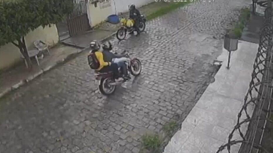 Bandidos renderam um homem e o assaltaram, na manhã deste sábado 07, em Macaíba, na Região Metropolitana de Natal. Imagens do crime, gravadas por câmeras de segurança, foram divulgadas pela Polícia Militar. Conforme é possível ver no vídeo, os criminosos jogam um celular no chão e levam sacolas de compras.