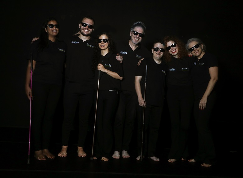 A peça conta com atores com deficiência visual, que passam a ser peças de extrema importância quando o trabalho ocorre no completo escuro.