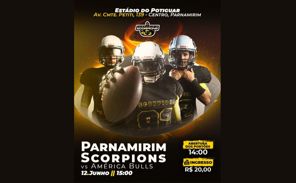 Neste domingo (12) começa a temporada de futebol americano para duas equipes potiguares: Parnamirim Scorpions e América Bulls. Os dois times vão disputar a Conferência Nordeste da Liga Brasileira de Futebol Americano. Logo na estreia pelo campeonato nacional, as duas equipes se enfrentarão, no clássico regional.