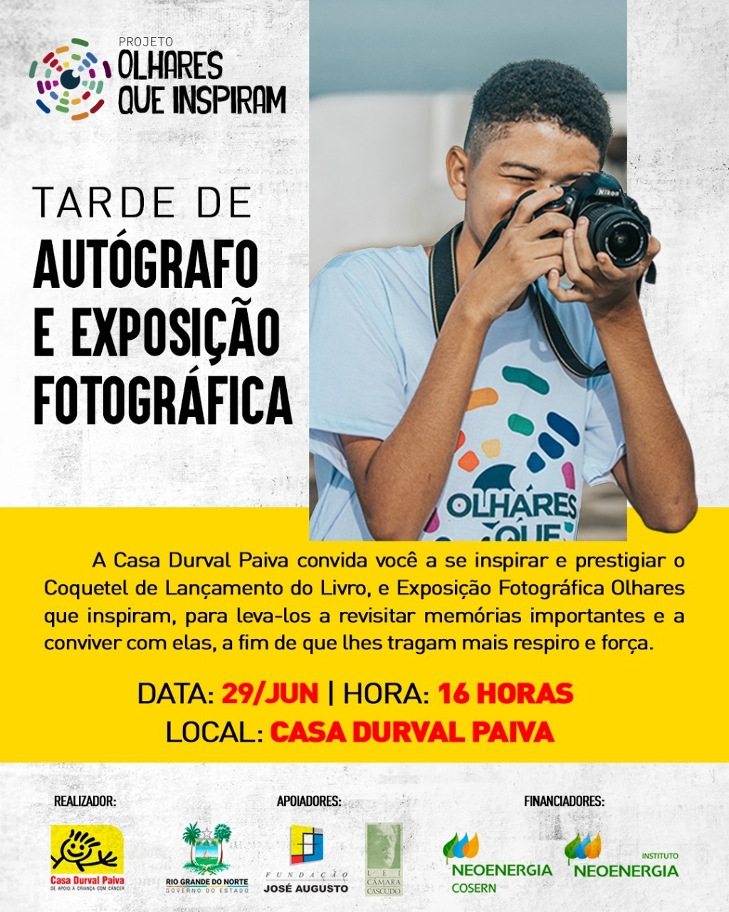 Desenvolver talentos e promover a inclusão social são objetivos trabalhados na Casa Durval Paiva. Como resultado do trabalho realizado dentro do projeto “Olhares que Inspiram”, a instituição promove o lançamento do livro e exposição fotográfica, que levam o nome do projeto, no dia 29 de junho, às 16h, no espaço Casa Vida, que funciona dentro da CDP.