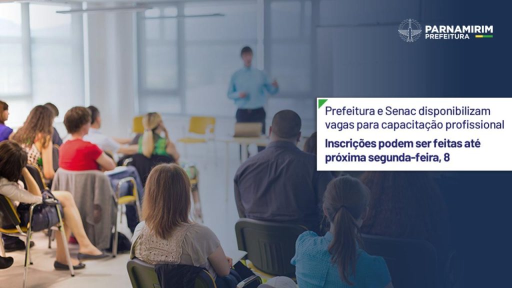 A parceria entre Prefeitura de Parnamirim e Senac prorrogou o prazo de inscrição nas vagas em cursos de capacitação. A nova data limite é a próxima segunda-feira (8). A Secretaria Municipal de Assistência Social (Semas), por meio da Coordenadoria do Trabalho, está com um lote de vagas de qualificação à disposição da população. As vagas são para Cuidador de Idosos e Vendedor.
