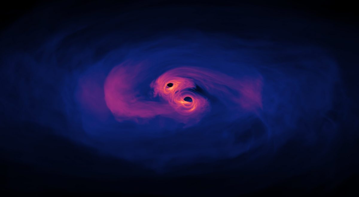 Os buracos negros binários são dois buracos negros que entraram na órbita um do outro. Eles iniciam um movimento circular entre si que se intensifica quanto mais se aproximam. Esse movimento gera gigantescas ondas gravitacionais, que se propagam por todo o universo e podem ser identificadas utilizando detectores de ondas gravitacionais.