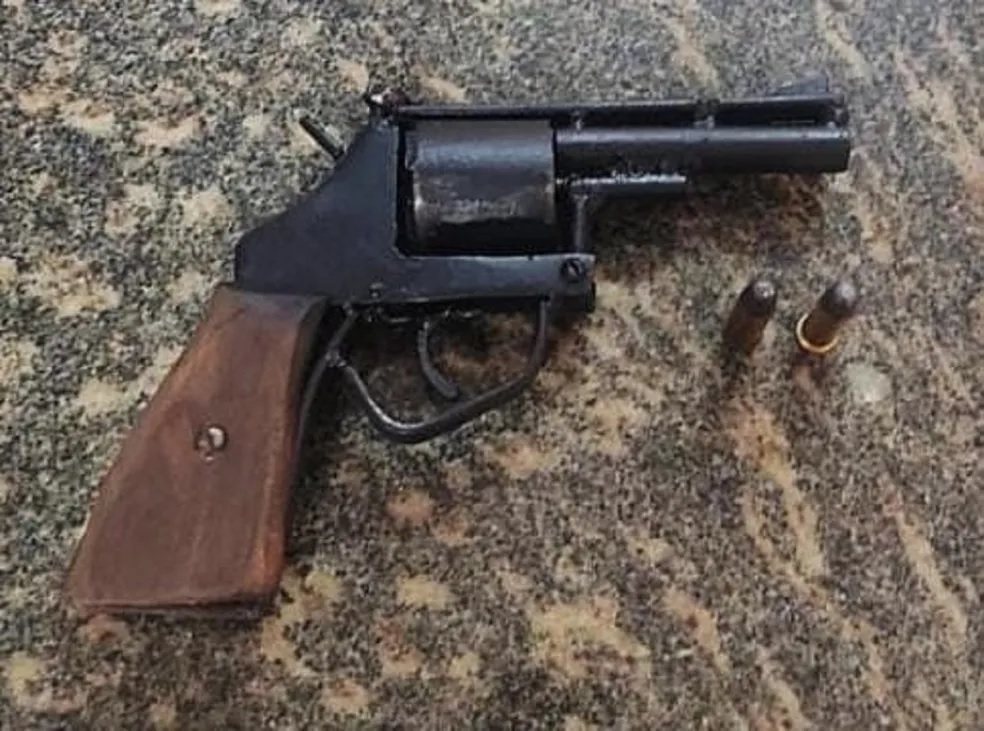 Ao chegar à rua, os policiais encontraram o suspeito e apreenderam com ele um revólver calibre 38 de fabricação caseira, que tinha duas munições intactas.